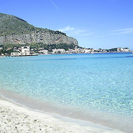 Una spiaggia caraibica, Mondello, a pochi chilometri dal centro di Palermo. Per gli amanti degli scogli, Sferracavallo a 20 minuti in auto o bus.Mondello, a splendid beach a few kilometers from the center of Palermo. For rocks lovers there is Sferracavallo 20 mi. away. Quite a few more at close distance.Una playa caribeña, “Mondello”, a escasos kms del centro de Palermo. Para los amantes de las rocas, “Sferracavallo”, a 20 min en coche o de bus.